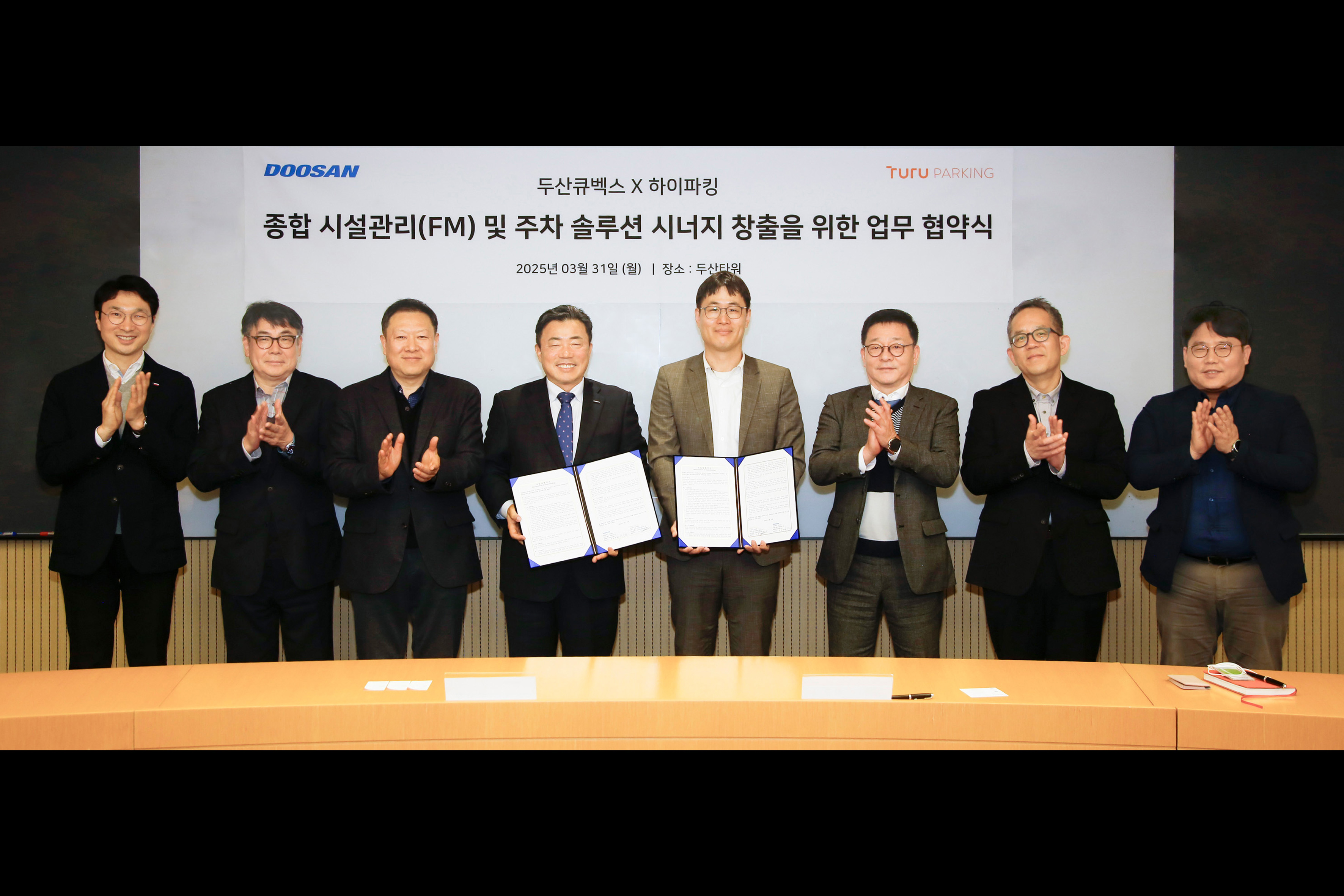 국내 1위 주차장 운영 브랜드와 두산그룹 시설관리 계열사의 전략적 파트너십 체결 주차장 보안, 미화는 물론 스마트 주차장 구축 및 기술 고도화 기대 ▲서울시 중구 동대문 두산타워에서 박준규 하이파킹 대표(오른쪽에서 네번째)와 곽승환 두산큐벡스 대표(왼쪽에서 네번째)는 종합 시설 관리 서비스 및 스마트 주차 솔루션의 시너지 창출을 위해 전략적 업무 협약에 나섰다. 휴맥스모빌리티의 주차장 운영 전문 자회사 하이파킹은 두산큐벡스와 손잡고 스마트 주차 관리시스템 구축을 위한 협력 방안을 모색한다. 하이파킹은 지난 31일 서울시 중구 동대문 두산타워에서 두산큐벡스와 ‘주차장 내 시설관리 및 스마트 주차 관리시스템’ 관련 업무협약을 체결했다. 이번 협약은 두 회사가 상호 협력을 통해 종합 시설관리(FM) 서비스 및 주차 솔루션의 시너지 창출을 목적으로 이뤄졌다. 하이파킹은 국내 주차장 1위 브랜드 투루파킹을 운영 중으로 광화문 D타워, IFC서울 등 1300여 개의 대형 오피스 빌딩, 쇼핑몰, 병원, 학교 등에서 29만 개의 주차면을 운영하며 월 최대 2500만 대의 차량을 관리하는 국내 최대 주차장 운영 전문 브랜드다. 특히 인공지능(AI) 기반 공간 활용 솔루션과 데이터 기반 의사결정 능력에서 시장 경쟁력을 인정받고 있다. 두산큐벡스는 두산그룹의 시설관리 전문 계열사로 현재 동대문ᆞ분당 두산타워 등의 업무시설부터 체육시설, 교육연구시설까지 다양한 시설의 종합 관리 노하우를 보유하고 있다. 특히 소방·방재기술을 중심으로 한 안전관리와 시설물 유지보수 분야에 강점을 갖고 있다. 하이파킹은 두산큐벡스와의 협업을 통해 주차장내 보안, 미화, 화재 방지 등 주차장 이용 고객의 만족도를 높이는 솔루션을 내놓을 것으로 기대된다. 또한 더 나아가 스마트 주차관리 솔루션 기술 고도화를 위해 양사가 상호 보유한 경험과 기술, 솔루션을 공유하고 협력할 예정이다. 구체적으로 하이파킹은 현재 관리, 혹은 관리 예정인 주차장 중 시설관리가 필요한 곳에 효과성을 따져 두산큐벡스의 시스템을 적용하는 방안을 검토한다. 두산큐벡스는 현재 시설관리 중인 주차장에 하이파킹의 인공지능(AI) 스마트 주차 솔루션 서비스를 도입하는 방안을 적극 살펴볼 예정이다. 박준규 하이파킹 대표는 “두산큐벡스는 시설관리 및 방재사업 부문에서 높은 경쟁력과 경험을 보유한 회사”라며, “두산큐벡스와의 협력을 통해 하이파킹 주차장 고객들의 안전과 만족도를 높이고, 스마트 주차 관리시스템을 고도화 할 수 있도록 최선을 다하겠다”고 말했다.